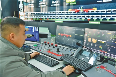 在老石旦煤礦生產(chǎn)指揮中心智能化調(diào)度室,隨著工作人員通過(guò)5G信號(hào)向井下工作面發(fā)出工作指令,深井中的皮帶運(yùn)輸機(jī)、破碎機(jī)、轉(zhuǎn)載機(jī)等一個(gè)個(gè)重型機(jī)械陸續(xù)被“激活”進(jìn)入生產(chǎn)狀態(tài)。
