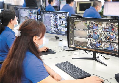 山東青島西海岸新區(qū)依托移動互聯(lián)網(wǎng)、云計算、大數(shù)據(jù)、車聯(lián)網(wǎng)等先進技術和理念打造“智慧公交”,助力市民綠色出行。圖為青島真情巴士集團智慧公交指揮中心調(diào)度員在實時查看車輛運行情況。張進剛攝(人民視覺)