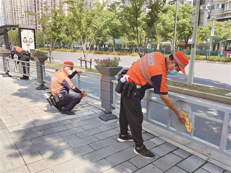 “城市管家”隊伍是城管隊伍的補(bǔ)充力量,為城市精細(xì)化管理提供了有力支撐。江溪街道綜合行政執(zhí)法局“城市管家”工作負(fù)責(zé)人張嫻說,早在2020年街道就率先在全市采用“城市管家”一體化管理模式。為了改變以往“一把掃帚掃天下”的粗放型保潔模式,還投入使用了一批深度清洗車、洗掃車、道板清洗車等作業(yè)車輛,通過“人工+機(jī)械”相互配合的模式,實現(xiàn)多機(jī)種立體化作業(yè)。目前街道的“城市管家”實行“早六晚十”兩班倒工作模式。工作內(nèi)容主要是對主干道及道路兩側(cè)可視范圍實施高質(zhì)量管理服務(wù),包括沿街機(jī)動車、非機(jī)動車引導(dǎo)停放管理,道板以上區(qū)域環(huán)衛(wèi)保潔、城市家具日常管養(yǎng)、沿街店外經(jīng)營、亂堆亂放勸導(dǎo)管理以及“撤桶”后沿街商鋪生活垃圾統(tǒng)一收運(yùn)等。“城市管家”的上崗,在一定程度上解決了部分公共區(qū)域失管、管理能效低的突出矛盾。