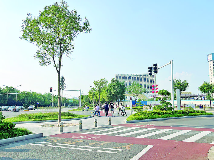 市民過馬路采取無障礙上島模式,給過馬路的行人和非機動車提供安全的等待區(qū)域,避免行人和非機動車與機動車發(fā)生沖突,保障廣大市民通過交叉口時的安全。