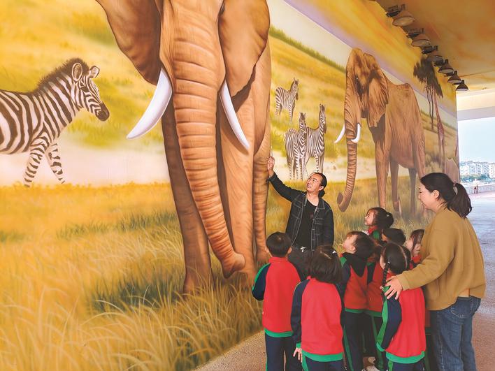“這大象鼻子好長(zhǎng)喲,還有斑馬,一個(gè)、兩個(gè)、三個(gè),真好玩!”日前,在興化市五里大橋東岸橋下,一群小朋友在家長(zhǎng)的陪同下觀賞“動(dòng)物世界”。小朋友們好奇地睜大眼睛看著,不時(shí)用手觸摸。