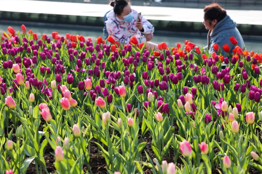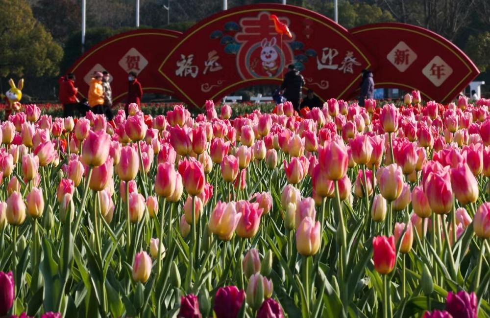 法治網(wǎng)訊(李佳靜 張黎哲)近日,位于浙江省寧波市鄞州區(qū)政府南側(cè)的鄞州區(qū)文化廣場(chǎng)內(nèi),各色郁金香凌寒綻放。為了營(yíng)造新春喜慶氛圍,鄞州區(qū)綜合行政執(zhí)法局園林部門在該區(qū)域?qū)iT打造“郁金啟春”主題花展,以紅、橙、黃三色郁金香為主打,選用紫衣王子、紅燈籠、卡羅拉等9個(gè)品種共4萬余株郁金香,布展面積2500余平方米。