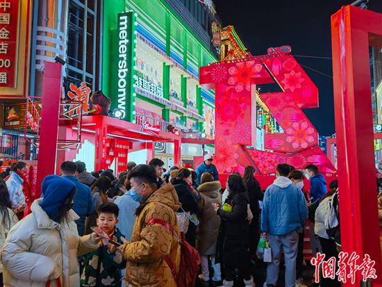 1月16日晚上,長沙步行街仍然川流不息。許多商家都在搭臺推出促銷活動。記者 洪克非/攝