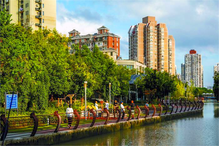 隨著城市更新的不斷推進(jìn),位于上海市楊浦區(qū)茭白園路蘭州路附近的“老破小”城中村,如今已成為環(huán)境優(yōu)美且宜居的現(xiàn)代化住宅社區(qū)。圖為市民在蘭州路綠化景觀區(qū)域內(nèi)休閑散步。(王岡)