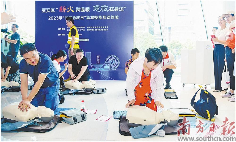 9月9日,在第24個“世界急救日”當(dāng)天,深圳市寶安區(qū)啟動“薪火聚溫暖,急救在身邊——群眾應(yīng)急救護(hù)培訓(xùn)”,依托各級黨群服務(wù)陣地,構(gòu)建“政府主導(dǎo)、部門協(xié)同、專業(yè)指引、科技支撐、社會參與”的全覆蓋社會急救培訓(xùn),守護(hù)人民群眾的生命安全。首期培訓(xùn)當(dāng)天在寶安區(qū)黨群服務(wù)中心和10個街道的黨群服務(wù)中心同步開展。