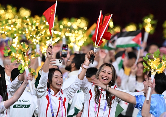 10月8日,中國運(yùn)動(dòng)員在閉幕式上。新華社記者 程敏/攝
