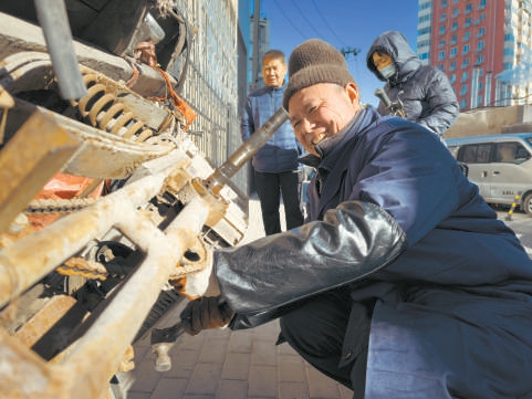 萬(wàn)泉莊南社區(qū),修車師傅幫居民維修車輛,為大家提供暖心的便民服務(wù)??茕瓟z