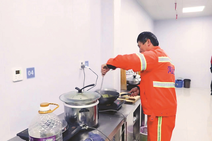 首先是解決環(huán)衛(wèi)工人吃飯的問題。河西建環(huán)征求意見時(shí),超八成環(huán)衛(wèi)工人提出希望能自己燒飯。2023年10月,企業(yè)先后投入二十幾萬,在原來規(guī)劃小賣店的位置對(duì)水、電、地下管線等進(jìn)行全面改造,建設(shè)公共廚房,并為“每家每戶”劃定使用區(qū)域。