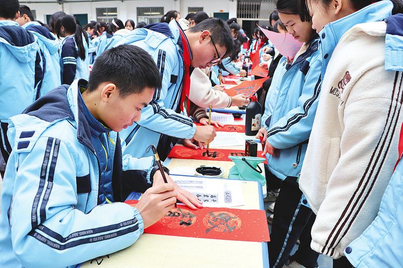 一筆一墨、一橫一豎、一撇一捺,同學(xué)們書(shū)寫(xiě)著滿是吉祥祝福的春聯(lián),表達(dá)的是新春的祝福和對(duì)美好生活的向往。
