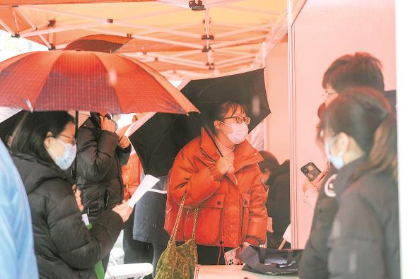 2月21日,“春風行動”招聘活動在鐵路上海站北廣場舉辦。盡管天氣不佳,仍吸引了眾多求職者 記者 陳夢澤 攝
