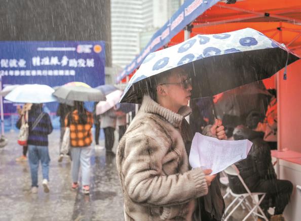 盡管春寒料峭、大雨滂沱,這兩天在上海火車站北廣場舉行的2024年靜安區(qū)“春風行動”招聘會卻“火了”,求職者們從城市的四面八方趕來,有的剛走出火車站,就碰上了這個寶貴的機會。