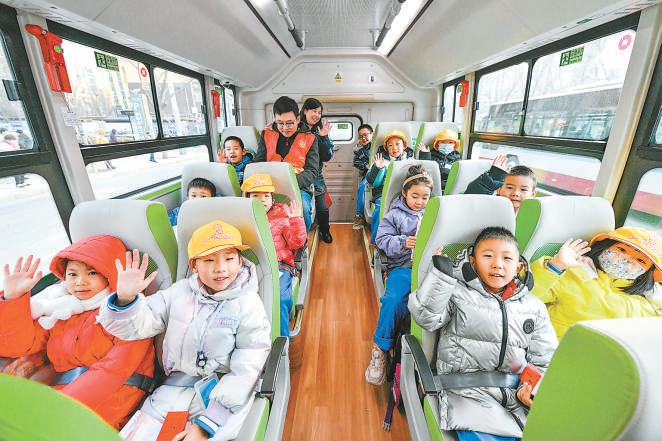 這16名小乘客是北大附中石景山學(xué)校一年級(jí)學(xué)生?!皩W(xué)校西黃村新址還未建成,目前一年級(jí)在金頂街小學(xué)借址辦學(xué)。因此,對(duì)于家住西黃村附近的部分學(xué)生來說,上下學(xué)接送不太方便。”副校長張結(jié)實(shí)介紹,考慮到“小豆包”年紀(jì)小,通學(xué)車上除了公交乘務(wù)員,每天還有教師志愿者全程跟車。