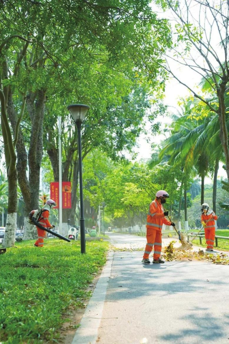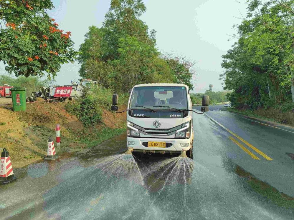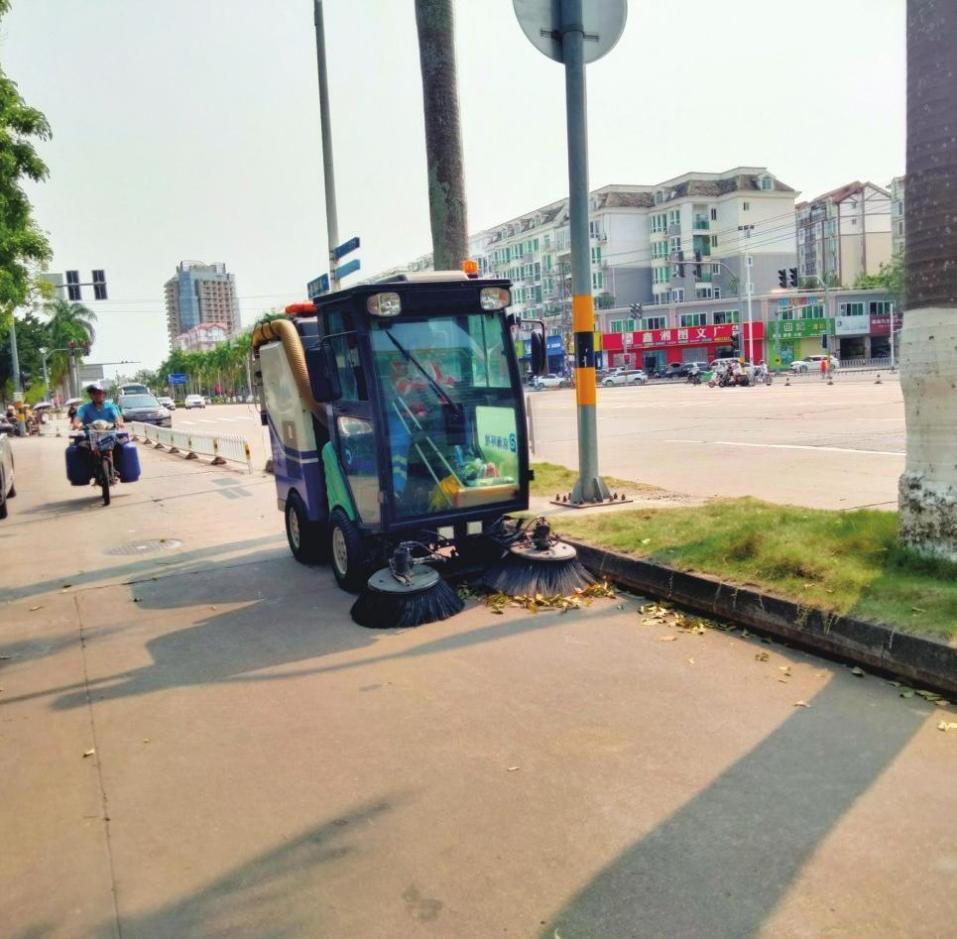 另外,根據(jù)各道路落葉情況,福龍馬??诠驹诼淙~較為集中、路面較寬的路段,實(shí)行“機(jī)械+人工”的作業(yè)模式,及時(shí)增加機(jī)械化清掃頻次,調(diào)整作業(yè)時(shí)間,利用高壓水車、大型清掃車等設(shè)備對(duì)落葉路段進(jìn)行清掃,形成機(jī)械化作業(yè)為主、人工作業(yè)為輔的作業(yè)模式,提升落葉清掃工作效率。