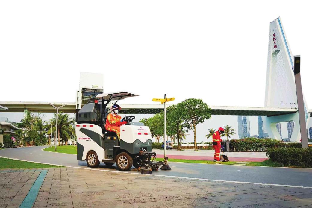 ??诰┉h(huán)公司小型車輛是清潔人行道的利器。北環(huán)海分公司供圖