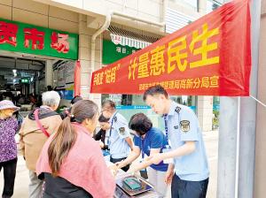 同時,廣泛開展“手機變砝碼,計量惠民生”主題宣傳服務(wù)系列活動,營造人人關(guān)注計量、人人重視計量的濃厚氛圍,依托電子顯示屏、宣傳欄等,通過設(shè)置宣傳服務(wù)臺、懸掛橫幅、擺放展板、發(fā)放宣傳資料、播放宣傳片以及發(fā)放宣傳單等方式開展宣傳,工作人員向過往群眾宣傳“手機變砝碼”活動的意義,講解電子秤等計量器具常識、解答消費者權(quán)益相關(guān)問題,現(xiàn)場指導(dǎo)判斷“不合格秤”的方法,提示消費者在發(fā)現(xiàn)“不合格秤”時可以撥打12315熱線向市場監(jiān)管部門投訴舉報。活動現(xiàn)場發(fā)放宣傳資料800多份、宣傳袋400多個,讓更多的人了解計量、支持計量。
