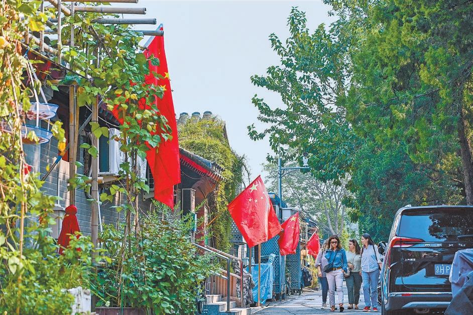 9月24日,記者在西城區(qū)西交民巷社區(qū)東中胡同看到,家家戶戶已經(jīng)掛起五星紅旗,迎接國(guó)慶佳節(jié)到來。實(shí)習(xí)記者 金瑤 攝