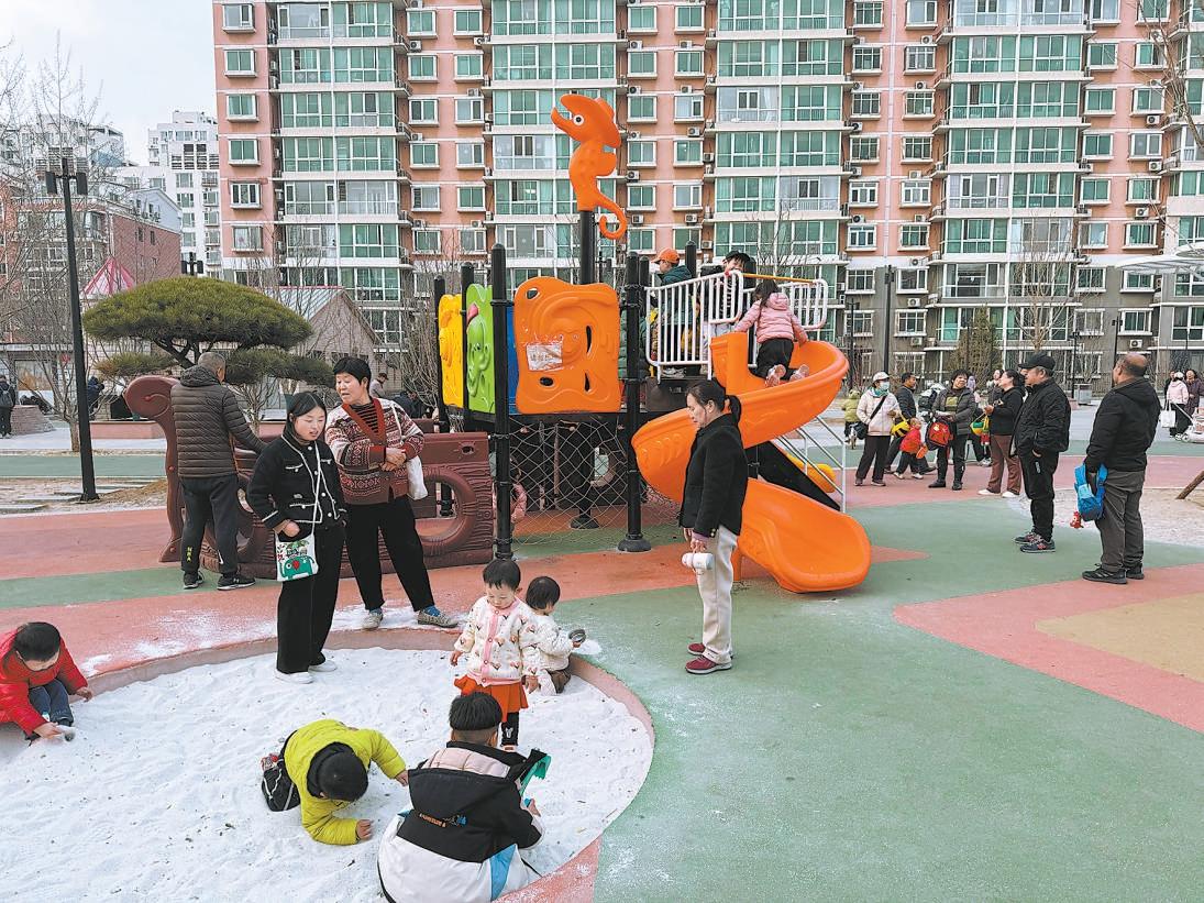 地處小區(qū)之間的“方寸之地”,馨園公園不大,分區(qū)卻不少。除了兒童游樂區(qū),還有適合成年人健身、下棋、寫地書的場地?!叭ツ?0月開園即火爆,周末同時在園人數(shù)經(jīng)常突破500人。”通州區(qū)城管委工作人員王嘉杰說,改造前,這里是一個建成20多年的小廣場,水系景觀很破舊,家長來遛娃,都不敢撒手,生怕磕了碰了。