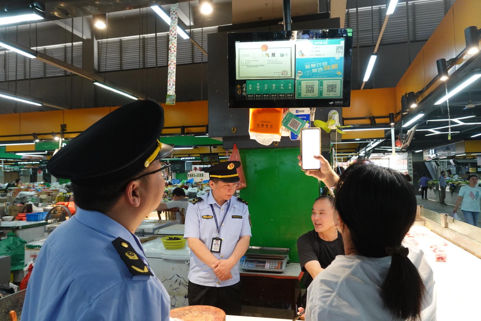 該局將數(shù)字化改革作為農(nóng)貿(mào)市場(chǎng)轉(zhuǎn)型升級(jí)的關(guān)鍵引擎,全力推動(dòng)梁弄菜場(chǎng)智慧化建設(shè)。指導(dǎo)菜場(chǎng)完成一系列標(biāo)準(zhǔn)化改造,配備 1塊終端公示屏、1塊智能查詢屏、76塊商戶信息屏等數(shù)字化設(shè)備,實(shí)現(xiàn)市場(chǎng)信息、檢測(cè)信息、價(jià)格信息等全面公開透明。引入智能監(jiān)控設(shè)備與AI技術(shù),實(shí)時(shí)監(jiān)測(cè)市場(chǎng)秩序,嚴(yán)厲打擊超攤擴(kuò)攤等違規(guī)行為,保障市場(chǎng)經(jīng)營(yíng)規(guī)范有序。