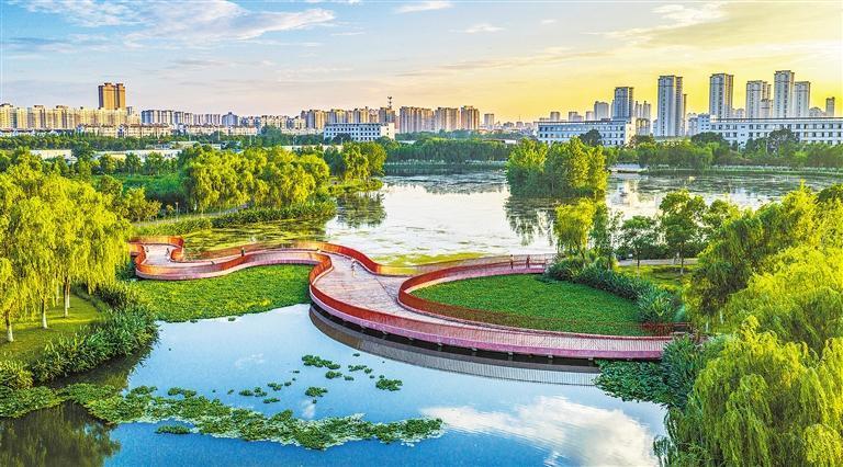 近日,雨后天晴,江蘇省宿遷市泗洪縣大樓街道尾水濕地公園美如畫卷。近年來,當地大力推進生態(tài)環(huán)境治理,在污水處理廠旁建成尾水濕地公園,既凈化水質,又為市民打造休閑場所。張連華 攝(中經視覺)