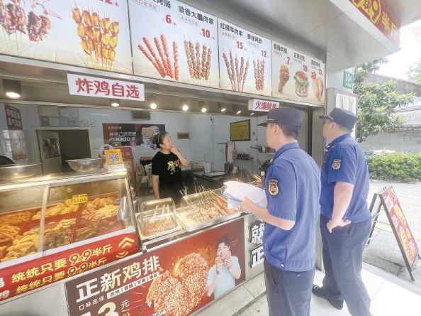 目前,呂巷鎮(zhèn)共設(shè)自產(chǎn)自銷農(nóng)產(chǎn)品疏導(dǎo)點3處,今年準(zhǔn)備對水果公園疏導(dǎo)點進行優(yōu)化,將分散式設(shè)攤改為集中設(shè)攤。比如璜溪佳苑集中居住項目開工后,因工地食堂不能滿足建筑工人需求而出現(xiàn)了流動食品攤販。對此,中隊現(xiàn)場開展調(diào)研,引導(dǎo)攤販租賃工地對面閑置商鋪,上門指導(dǎo)辦理營業(yè)執(zhí)照,最終4家餐飲店組成了“工地餐飲服務(wù)區(qū)”。同時,大家還制定了《外擺經(jīng)營公約》,允許商戶在午晚餐高峰時段劃定區(qū)域增設(shè)桌椅,既解決工人“吃飯難”,又保持環(huán)境整潔。