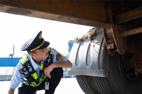 若遇上車流高峰,執(zhí)法隊(duì)員們便需鉚在灼熱的路面上:蹲守目標(biāo)、監(jiān)督稱重、緊盯卸貨環(huán)節(jié)。在烈日暴曬下,常常一站就是幾小時(shí)。汗水肆意流下,刺進(jìn)眼睛,也只能快速抬手抹一把。