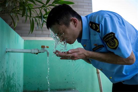 撤回休息點(diǎn),張可贊接起一抔水,潑到臉上,帶來一陣冰涼?;氐绞覂?nèi),冷氣吹過身體,濕透的制服變得硬挺,張可贊和隊(duì)友拿起一瓶水,一飲而盡。