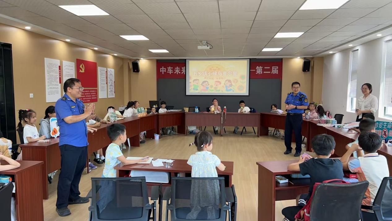 在互動(dòng)答疑環(huán)節(jié),孩子們踴躍提問(wèn),將學(xué)習(xí)和生活中遇到的困惑與疑問(wèn)向在場(chǎng)的工作人員和律師請(qǐng)教,現(xiàn)場(chǎng)氣氛熱烈而融洽。即將升入三年級(jí)的朱續(xù)文和即將升入五年級(jí)的朱婧媛是一對(duì)姐妹,她們的父母都在五鄉(xiāng)轄區(qū)的企業(yè)工作。作為此次活動(dòng)中的“小候鳥(niǎo)”,姐妹倆收獲頗豐。朱婧媛開(kāi)心地說(shuō):“這次活動(dòng)讓我學(xué)到了很多法律知識(shí)和安全常識(shí),掌握了更多保護(hù)自己的方法。而且,這也幫我完成了想多了解一些實(shí)用知識(shí)的微心愿,特別開(kāi)心?!?/p>