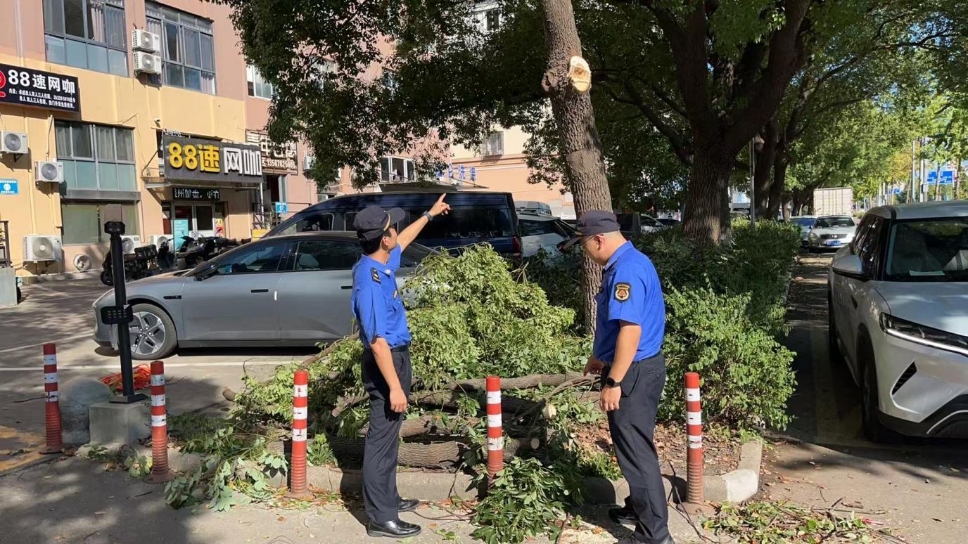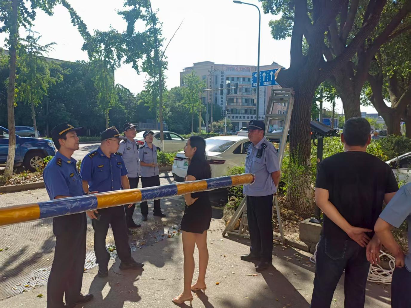 在處理過程中,執(zhí)法人員并未簡單“一罰了之”??紤]到酒店對樹木遮擋問題的迫切需求,隊員當即決定啟動“馬路辦公”,將市政綠化部門工作人員、酒店負責人召集到現(xiàn)場,三方圍坐展開協(xié)商?!爸苯涌硺浯_實不對,但樹枝擋著門牌,客人都找不到店,我們也著急?!本频昕偨?jīng)理任女士再次表達了難處。市政部門工作人員則現(xiàn)場勘查樹木生長情況,提出解決方案:“這幾棵香樟樹是重要的行道綠化,完全砍伐很可惜,我們可以通過專業(yè)修剪,保留主干與健康枝條,既解決遮擋問題,又能維持綠化效果?!?/p>