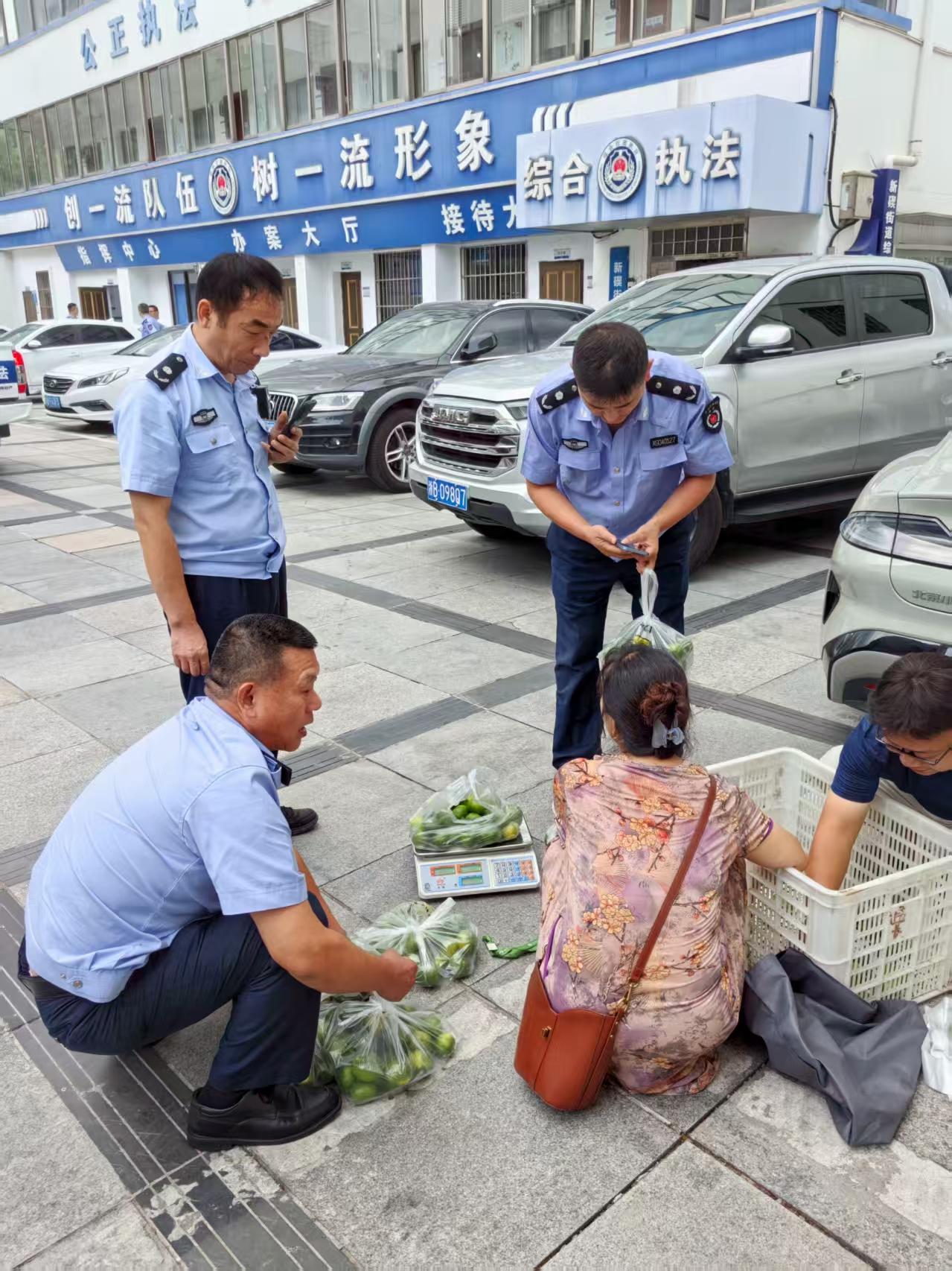 聽(tīng)著怑女士的講述,隊(duì)員們心里泛起了波瀾。考慮到老人的實(shí)際困難,大家決定在依法處罰后,主動(dòng)幫她解決銷路難題?!皭E大姐,您別著急,我們幫您想想辦法?!眻?zhí)法人員李海闊當(dāng)即拍下橘子的照片,在片區(qū)群里發(fā)起“助農(nóng)接龍”,詳細(xì)說(shuō)明了怑女士的情況、橘子的價(jià)格,以及老人的不易。消息一經(jīng)發(fā)出,立刻得到大伙的積極響應(yīng)?!拔乙?份”“給我留10塊錢的”“幫我?guī)?斤”……隨后,隊(duì)員們還特意幫怑女士聯(lián)系了附近社區(qū)的便民疏導(dǎo)點(diǎn),告知她辦妥手續(xù)后可在規(guī)范區(qū)域售賣,既不影響交通,也能更安心經(jīng)營(yíng)。