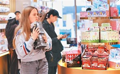在重慶市渝中區(qū)來福士商場的泡泡瑪特門店,市民選購相關(guān)產(chǎn)品。?孫凱芳攝(人民圖片)
