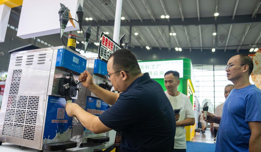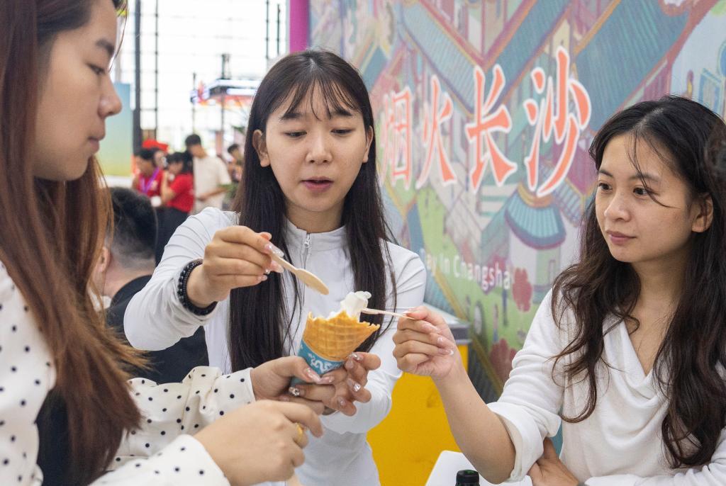 9月19日,在長(zhǎng)沙國(guó)際會(huì)展中心,觀眾在品嘗冰淇淋。新華社記者 陳思汗 攝