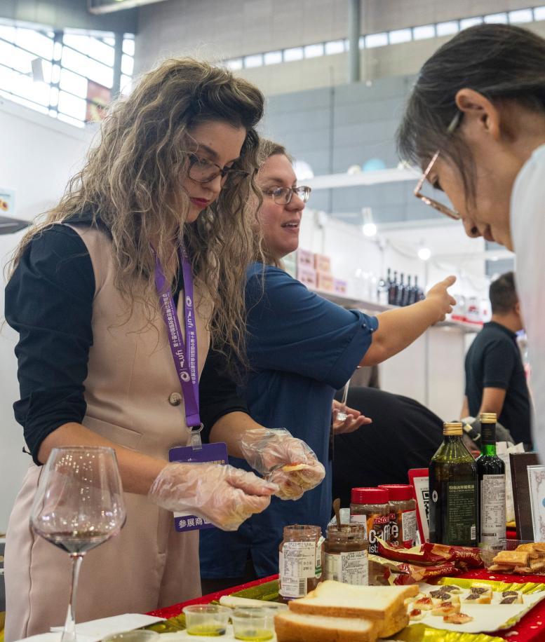9月19日,在長(zhǎng)沙國(guó)際會(huì)展中心,觀眾(中)在了解展出的奶制品。新華社記者 陳思汗 攝