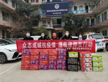 面對(duì)嚴(yán)峻的疫情防控形勢(shì),陜西渭臨律師事務(wù)所黨支部和律所共同發(fā)起“抗擊疫情募捐活動(dòng)”。律師們踴躍參與,募集善款5000余元,同時(shí)律所主任吳偉個(gè)人向渭南市臨渭區(qū)慈善協(xié)會(huì)捐款3000元。1月7日,律所主任吳偉、黨支部書(shū)記易天社、工會(huì)主席馬金俠帶領(lǐng)部分律師用募集的善款和上級(jí)黨組織返還的部分黨費(fèi)購(gòu)買了方便面、蘋(píng)果、酥梨和桔子等價(jià)值7000余元的慰問(wèn)物資,分別前往渭南市臨渭區(qū)城市管理執(zhí)法局雙王執(zhí)法大隊(duì)、臨渭區(qū)解放辦光華社區(qū)、渭南西站和臨渭區(qū)應(yīng)急管理局,為堅(jiān)守在防疫一線的值守人員送去溫暖和支持。