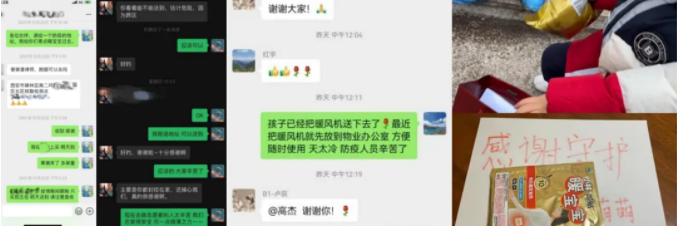 得知附近滯留人員生活存在一定困難,劉潔律師帶著家里兩個(gè)孩子給他們送去了插電鍋、食品等生活物資。張海燕、吳永靜、劉云平、董晨等一批女律師加入志愿者隊(duì)伍,下沉社區(qū)協(xié)助核酸檢測(cè)、維持秩序、運(yùn)送物資。潘睿、陳秋冰律師將大量暖寶寶到抗疫一線。胡聃、高杰、潘睿律師還為各自居住小區(qū)的核酸檢測(cè)人員送去暖寶寶、口罩、暖風(fēng)機(jī)等物資。女律師們巾幗不讓須眉,以女性的溫柔和堅(jiān)韌為西安寒冷的冬天增添了一抹溫暖。