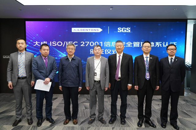 2022年4月6日,大成律師事務所獲國際公認的測試、檢驗和認證機構SGS頒發(fā)的ISO/IEC 27001信息安全管理體系認證證書并舉行頒證儀式。