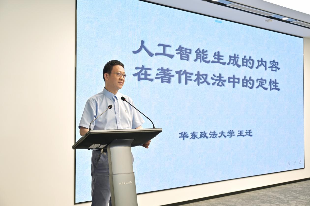 在四個小時的課程講解中,王遷教授就其觀點(diǎn)系統(tǒng)梳理了人工智能技術(shù)在內(nèi)容生成、數(shù)據(jù)處理等領(lǐng)域帶來的著作權(quán)法新挑戰(zhàn)。他圍繞AI生成內(nèi)容的可版權(quán)性認(rèn)定、權(quán)利歸屬、訓(xùn)練數(shù)據(jù)使用的合法性邊界、AI“創(chuàng)作”對傳統(tǒng)著作權(quán)制度的沖擊與調(diào)適等核心議題,進(jìn)行了鞭辟入里的分析。不僅闡釋了現(xiàn)行法律框架下的理論難點(diǎn),更結(jié)合國內(nèi)外最新立法動態(tài)、司法判例及產(chǎn)業(yè)實(shí)踐,提出了富有洞見的思考方向與可能的解決路徑。