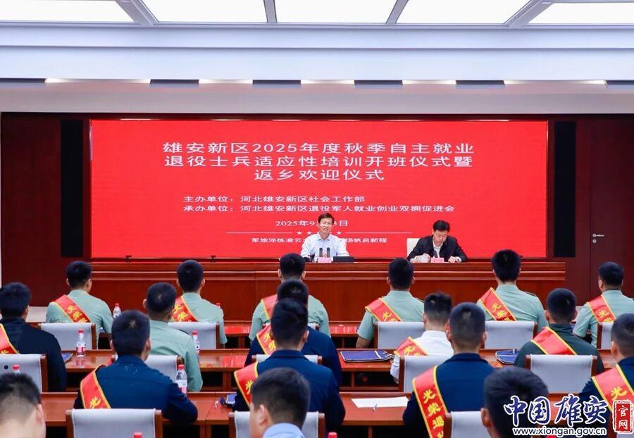 中國(guó)雄安官網(wǎng)9月24日電(王曉娟)為幫助退役軍人增強(qiáng)社會(huì)適應(yīng)性,更好完成角色轉(zhuǎn)變,9月23日,雄安新區(qū)舉行2025年度秋季自主就業(yè)退役士兵歡迎儀式暨適應(yīng)性培訓(xùn)開(kāi)班儀式。河北省委雄安辦副主任,雄安新區(qū)黨工委委員、社會(huì)工作部部長(zhǎng)王紀(jì)平出席歡迎儀式并致辭,2025年秋季返鄉(xiāng)全體自主就業(yè)退役士兵參加。