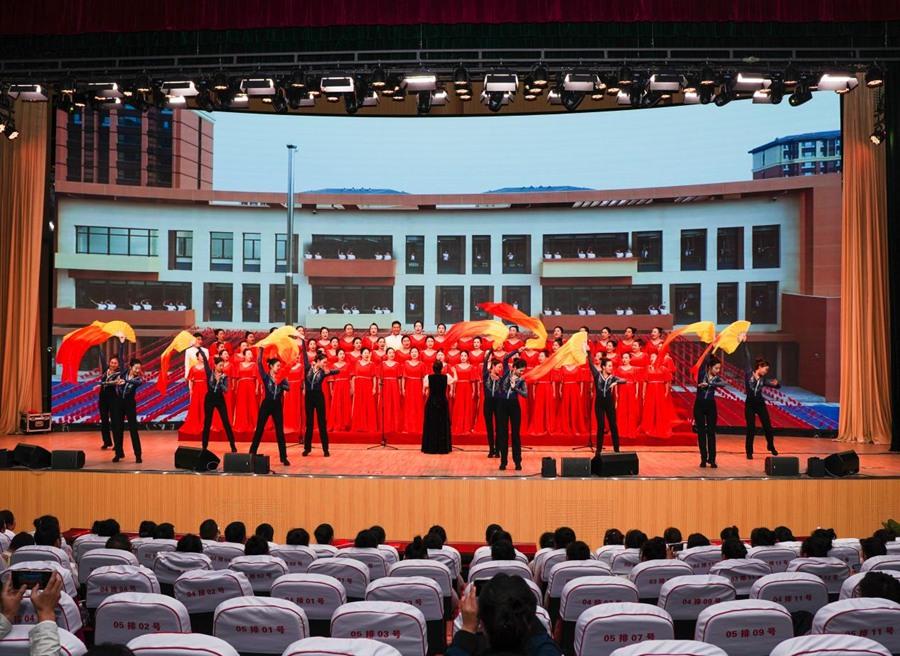 為慶祝中華人民共和國成立76周年,進一步激發(fā)容西片區(qū)廣大干部群眾的愛黨愛國熱情,豐富群眾精神文化生活,凝聚建設(shè)發(fā)展合力,9月27日晚,以“家在容西心向黨 心懷家國譜華章”為主題的容西片區(qū)“迎國慶 唱紅歌”合唱比賽在雄安容西容興高級中學(xué)報告廳舉行。