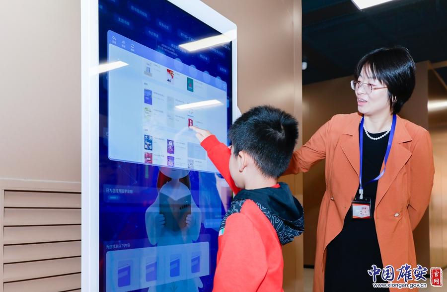讀者在體驗圖書館內(nèi)的智能設(shè)備。中國雄安官網(wǎng)發(fā)