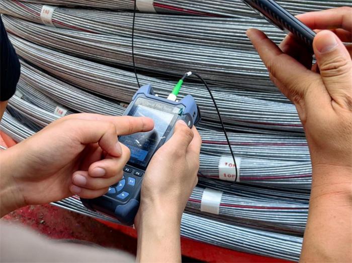 由于智慧纜索光纖成分是二氧化硅,安裝過程精度要求高,施工過程中,六安8標現(xiàn)場管理人員和工人聚精會神、精準調度,嚴格控制牽引速度,排查各工序對光柵光纖的保護措施。6日16時許,智慧纜索成功拉通入鞍后順利通過功能檢測。