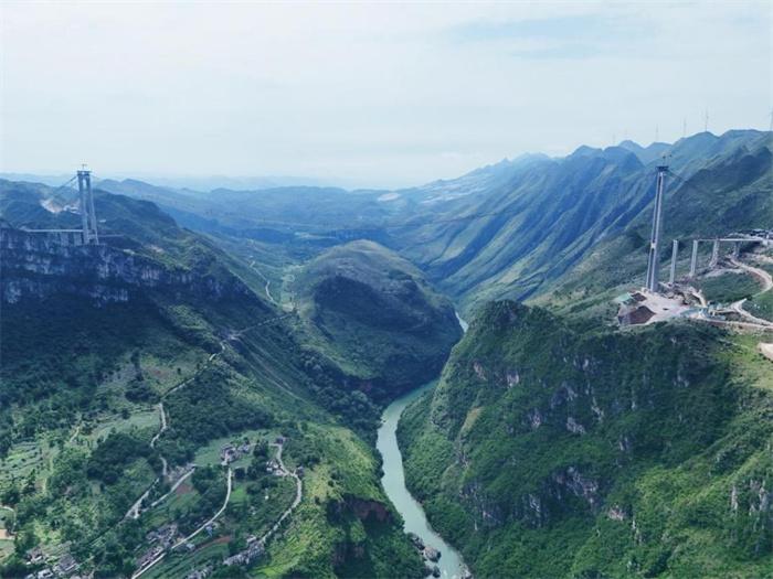 據(jù)了解,六安高速花江峽谷大橋是貴州省橋旅融合示范性項目工程,大橋主橋跨徑1420米,橋面至水面高度625米,建成后,花江峽谷大橋不僅主橋跨徑居山區(qū)橋梁跨徑世界第一,更將成為新的山區(qū)峽谷世界第一高橋。同時,將通過建設“橋梁觀光+橋梁運動體驗+旅游服務”為一體的橋旅融合綜合體,努力打造貴州橋旅融合3.0樣板。