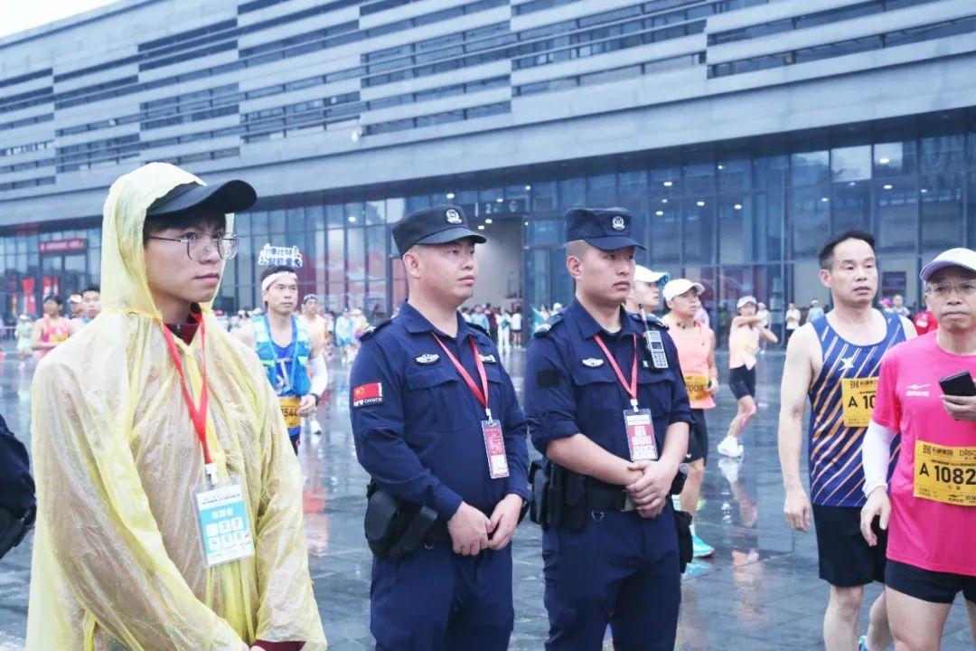 賽前,執(zhí)勤警力是賽道最早的“選手”。執(zhí)勤民警到崗第一時(shí)間,逐步開展道路清障、定點(diǎn)布崗、路況巡查等工作;賽中,出入口、安檢處、賽道上一道道“藏藍(lán)”身影,精神飽滿、警容嚴(yán)整、認(rèn)真履職、熱情服務(wù),成為最安全的“路標(biāo)”。