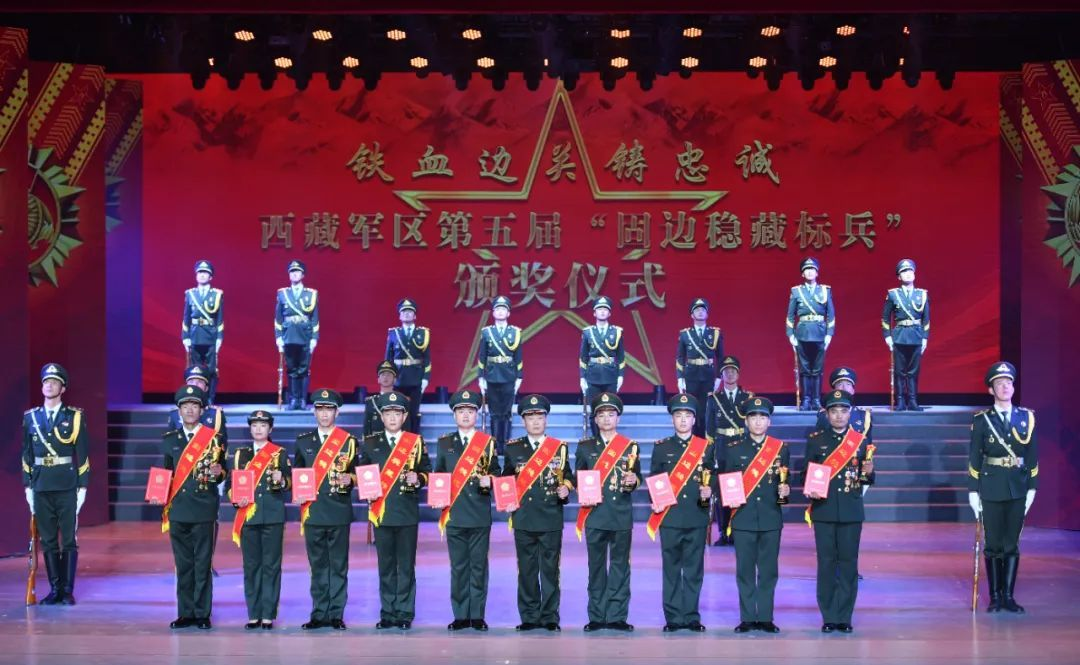 1月23日晚,在西藏軍區(qū)第五屆“固邊穩(wěn)藏標(biāo)兵”頒獎(jiǎng)儀式,王應(yīng)學(xué)(前排左三)等10名標(biāo)兵上臺(tái)領(lǐng)取榮譽(yù)證書(shū)、獎(jiǎng)杯