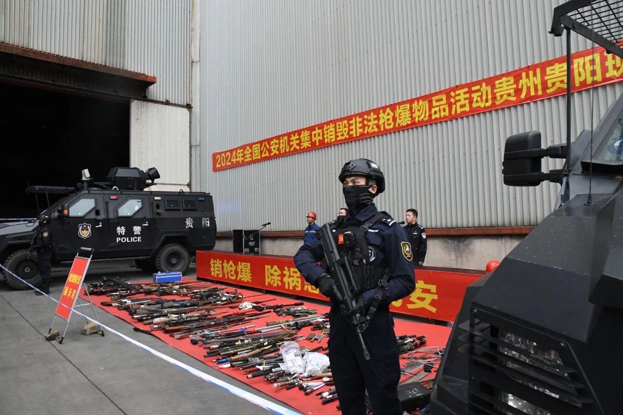 按照公安部統(tǒng)一部署,貴州省公安廳于10月22日在貴陽(yáng)市開(kāi)展以“銷(xiāo)槍爆 除禍患 保民安”為主題的集中銷(xiāo)毀非法槍爆物品活動(dòng)。貴州省公安廳、貴陽(yáng)市公安局等單位民警和部分群眾代表等參加現(xiàn)場(chǎng)活動(dòng)。