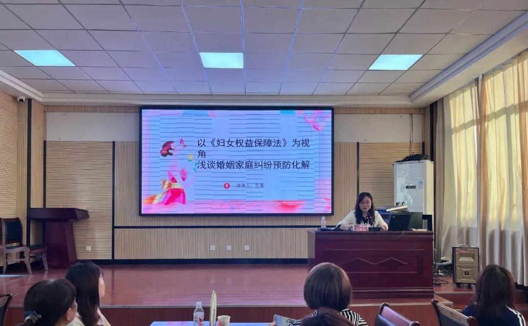 王英以《以〈婦女權(quán)益保障法〉為視角,淺談婚姻家庭糾紛預(yù)防化解》為主題,結(jié)合自身工作經(jīng)驗(yàn)和審判實(shí)踐中的典型案例,用通俗易懂的語言講解婦女權(quán)益保護(hù)相關(guān)法律法規(guī),增強(qiáng)婦聯(lián)干部的法律意識(shí),進(jìn)一步提高婦聯(lián)干部運(yùn)用法治思維和法治方式維護(hù)合法權(quán)益、化解矛盾糾紛的能力和水平。