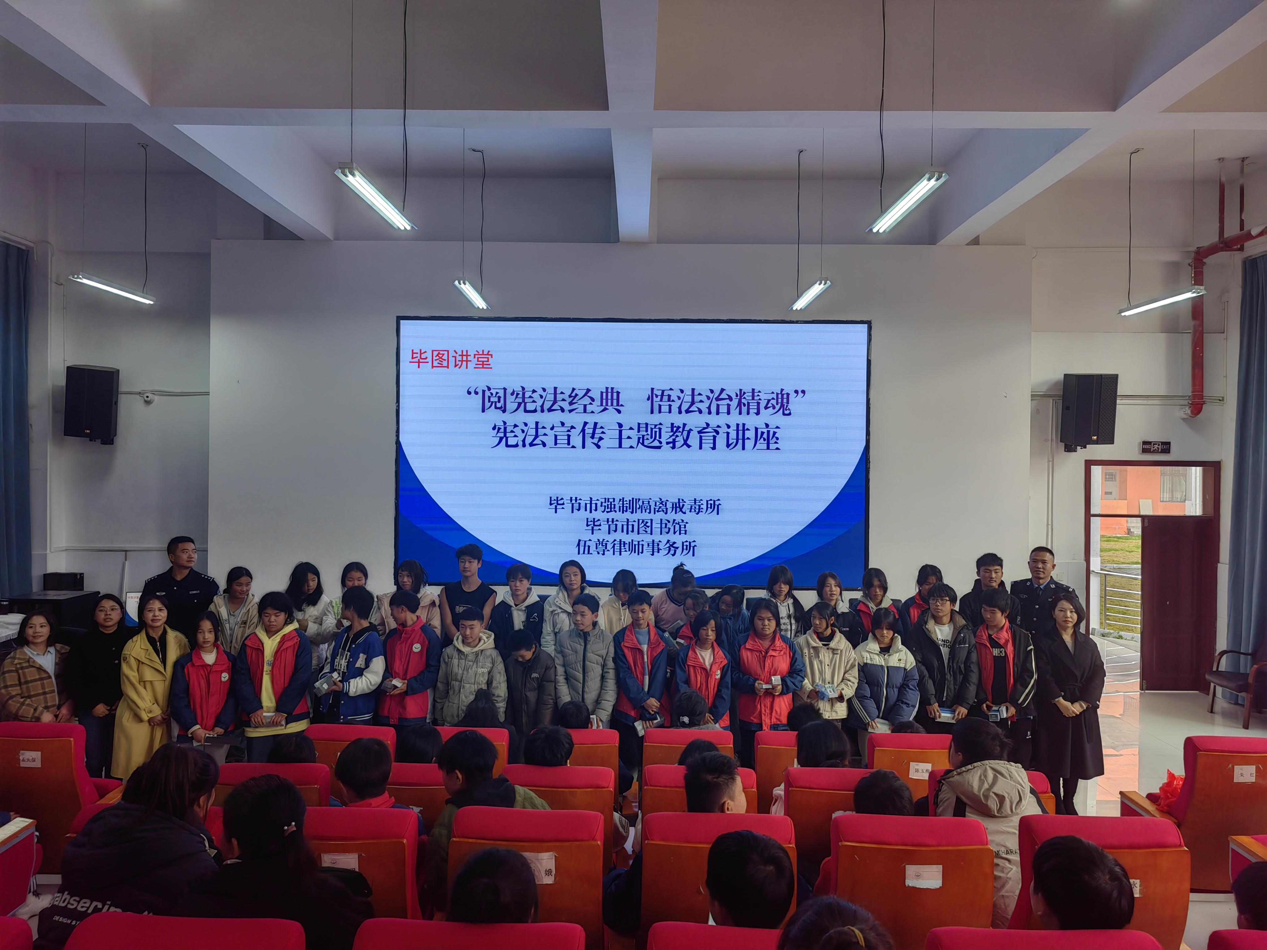 近日,貴州省畢節(jié)強制隔離戒毒所聯(lián)合畢節(jié)市圖書館、畢節(jié)市律師協(xié)會公益法律服務和社會責任委員會、伍尊律師事務所,共同走進七星關區(qū)荔灣實驗學校開展“閱憲法經(jīng)典 悟法治精魂”憲法宣傳周活動。