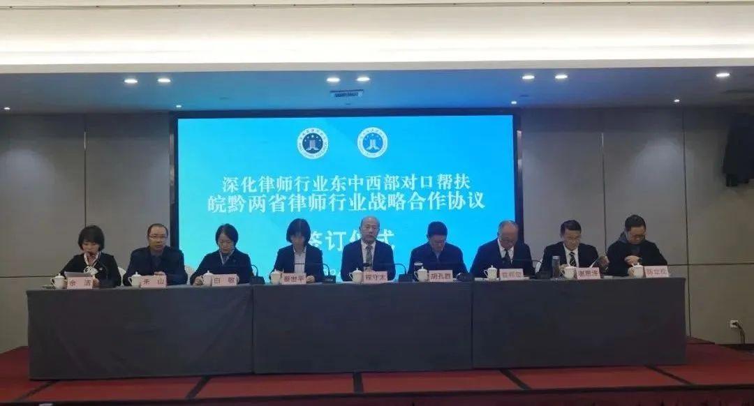 為進(jìn)一步推動(dòng)律師行業(yè)東中西部對(duì)口幫扶機(jī)制走深走實(shí),近日,安徽省、貴州省《關(guān)于深化律師行業(yè)東中西部對(duì)口幫扶 皖黔兩省律師行業(yè)戰(zhàn)略合作協(xié)議》簽訂儀式在貴陽(yáng)舉行。