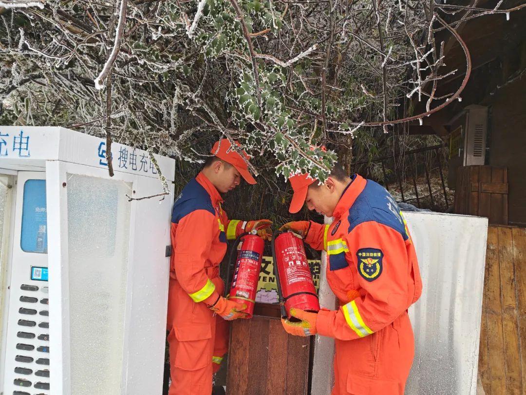 除保障游客通行安全外,消防救援人員還針對雪天用火用電頻繁的情況,在景區(qū)內(nèi)重點場所宣傳防火知識,檢查固定消防設(shè)施,全力構(gòu)建冬季消防安全“防火墻”,有效預(yù)防火災(zāi)事故的發(fā)生。