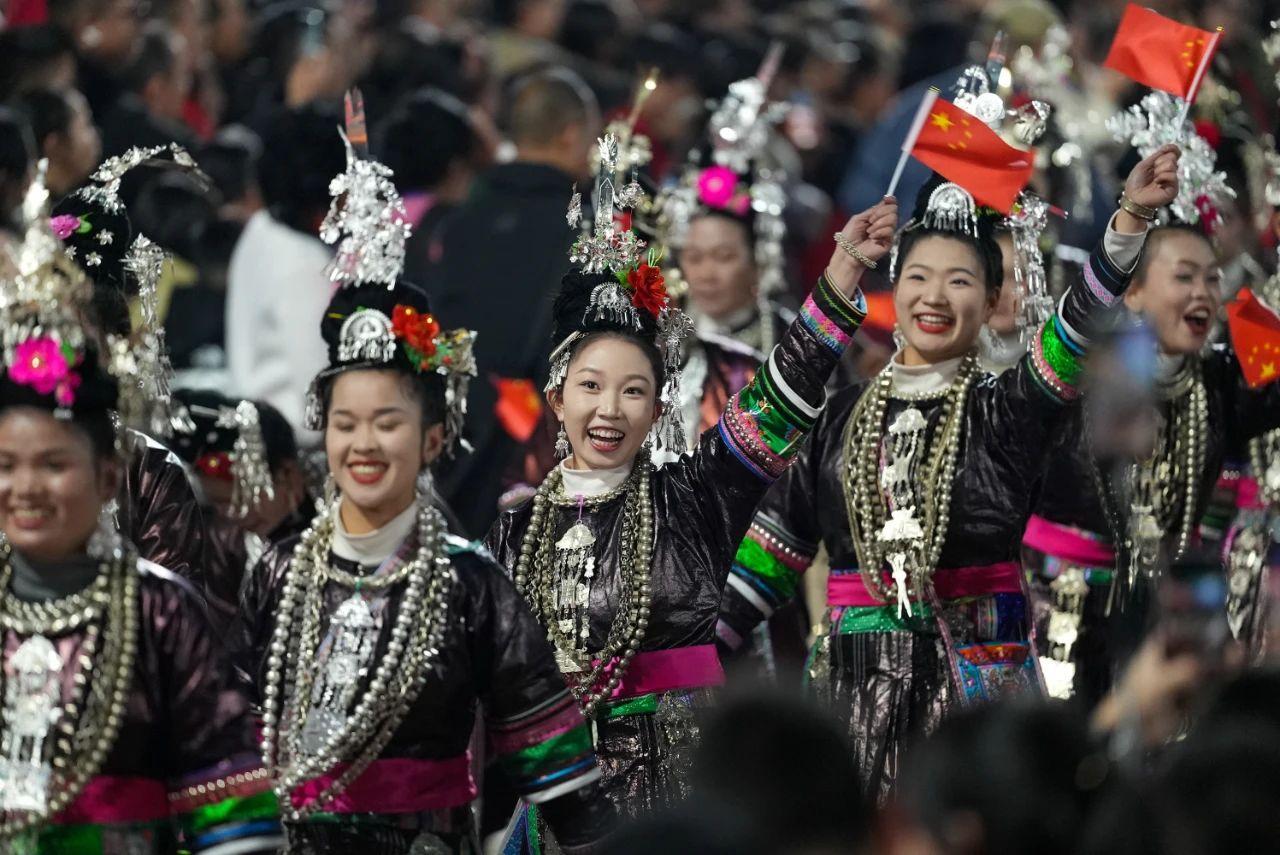 貴州“村超村晚”暨2025和美鄉(xiāng)村足球超級(jí)聯(lián)賽直播文藝展示活動(dòng),由勇往直前·逐夢(mèng)未來(lái)、載歌載舞·快樂(lè)相伴、非遺風(fēng)采·文化盛宴、民族團(tuán)結(jié)·盛世中華共四個(gè)篇章構(gòu)成。精彩紛呈的苗侗歌舞展演以及“村超”和美快樂(lè)的歌舞展示,令現(xiàn)場(chǎng)觀眾歡呼不斷,讓觀眾沉醉于一場(chǎng)充滿(mǎn)民族味、文化味、傳承味、團(tuán)結(jié)味的新春文化盛宴,吸引了來(lái)自全國(guó)各地的游客共享歡樂(lè)。這既詮釋了人們對(duì)美好幸福的憧憬,也展現(xiàn)出各族群眾共聚、共享、共樂(lè)的盛會(huì)。各族群眾以“村超”為媒,共同感受到了最純粹、最樸實(shí)的快樂(lè)和民族大家庭的溫暖。各族兒女匯集于此,像石榴籽一樣緊緊抱在一起,譜寫(xiě)了一曲新時(shí)期“中華民族一家親·同心共筑中國(guó)夢(mèng)”的動(dòng)人華章