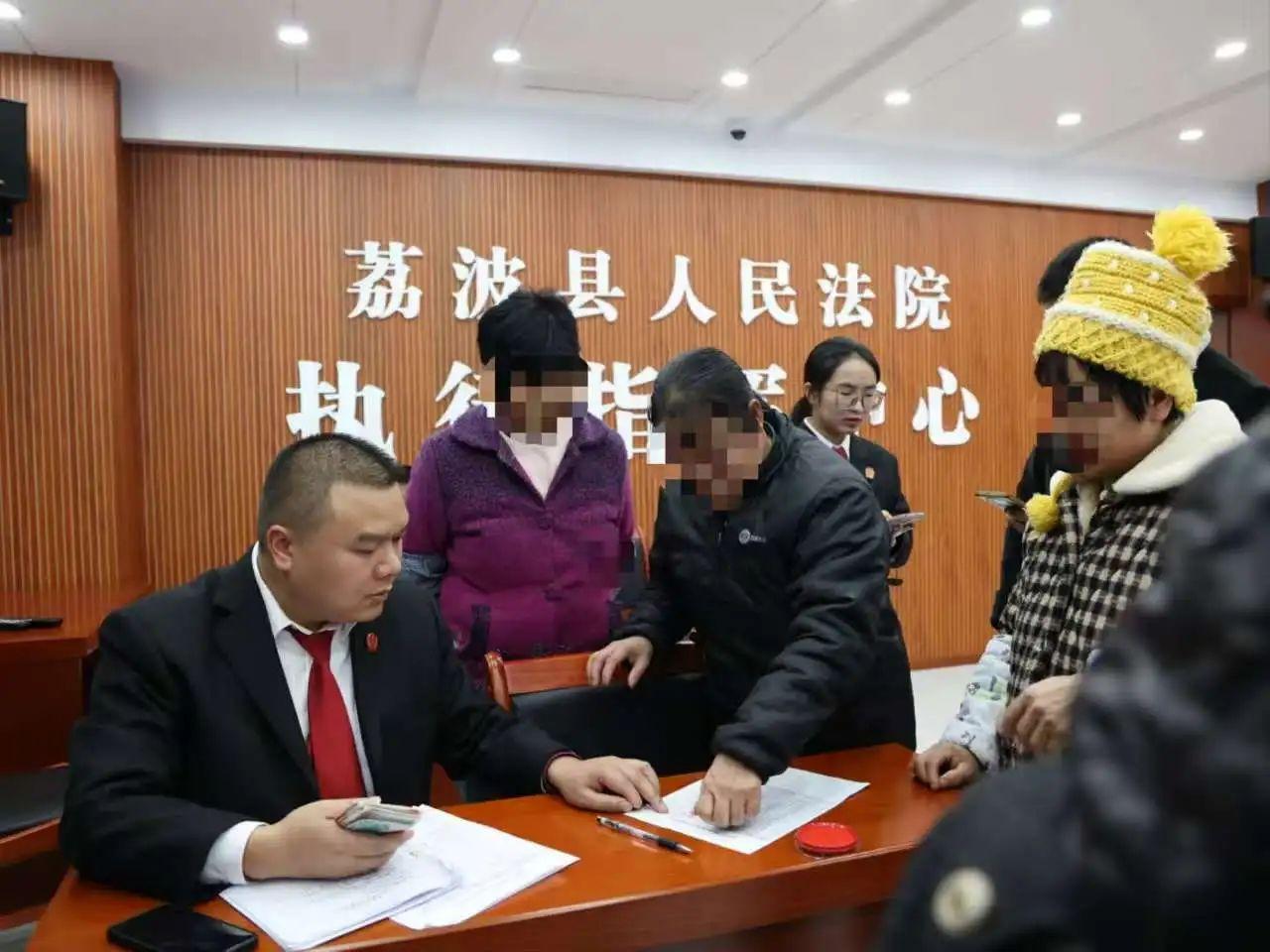 1月7日,貴州省黔南州荔波縣人民法院在執(zhí)行指揮中心舉行涉民生案件執(zhí)行案款集中發(fā)放儀式,向13名申請(qǐng)執(zhí)行人發(fā)放案款。